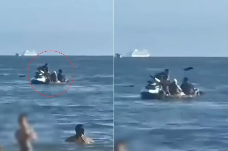 As imagens mostram a dupla se aproximando do casal enquanto crianças brincavam mais próximas da areia. Os suspeitos permaneceram alguns segundos em contato com as vítimas, tomaram os remos e chegaram a atingir uma delas na cabeça. Em seguida, afastaram-se levando os objetos, que foram abandonados logo depois no mar, antes de acelerarem a moto aquática e fugirem.
