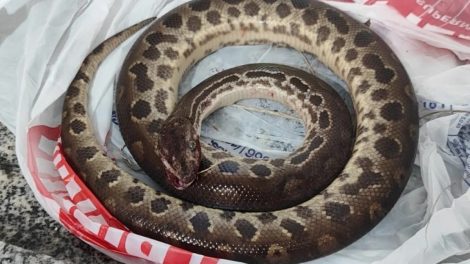 Um homem mordeu uma sucuri para se soltar após ser atacado pela cobra na noite de segunda-feira, 1º, no bairro Recanto dos Pássaros, em Mococa...