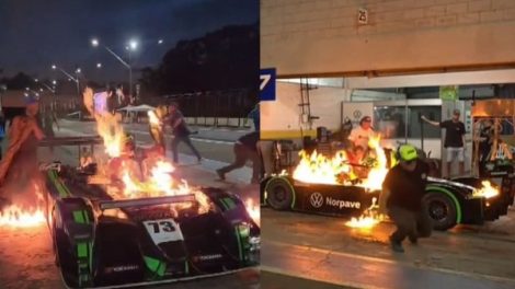 O piloto Leandro Totti deixou o carro em chamas durante troca de pilotos e abastecimento no Autódromo Internacional Ayrton Senna, em Londrina...