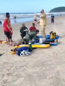 O homem conseguiu retirar a criança do mar, mas não conseguiu voltar sozinho. Ele foi resgatado por equipes de socorro ainda na praia, já em estado grave, e encaminhado à Unidade de Pronto Atendimento (UPA) Praia Grande. O idoso não resistiu e morreu na unidade de saúde.