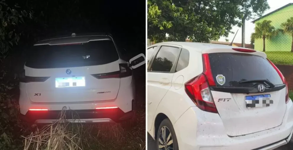Durante as diligências, os policiais localizaram primeiramente a BMW X1. Na sequência, em continuidade às buscas nas proximidades, o Honda Fit também foi encontrado.