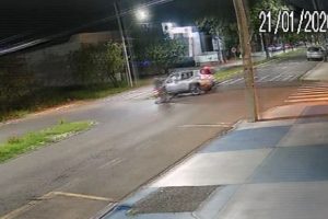Imagens de uma câmera de segurança flagraram o acidente que deixou um motociclista de 37 anos em estado grave na noite desta quarta-feira (21), em Maringá. A...