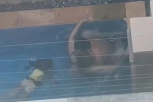 Um vídeo que viralizou nas redes sociais mostra um casal mantendo relações sexuais em uma piscina na presença de uma criança de 2 a 3 anos e oferecendo bebida...