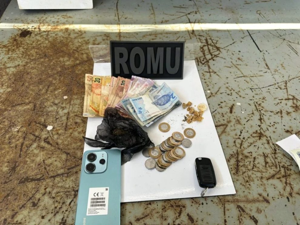 Na revista, não foi localizada a arma mencionada na denúncia. Os agentes encontraram porções de crack, maconha e dinheiro trocado no veículo.