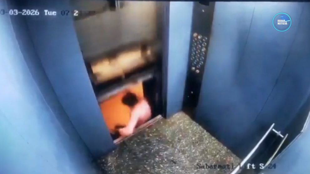 Um homem viveu momentos de tensão extrema ao escapar por pouco de ser esmagado por um elevador descontrolado em um condomínio residencial na cidade de Valsad, na Índia. O caso aconteceu na terça-feira (3) e foi flagrado por câmeras de segurança.