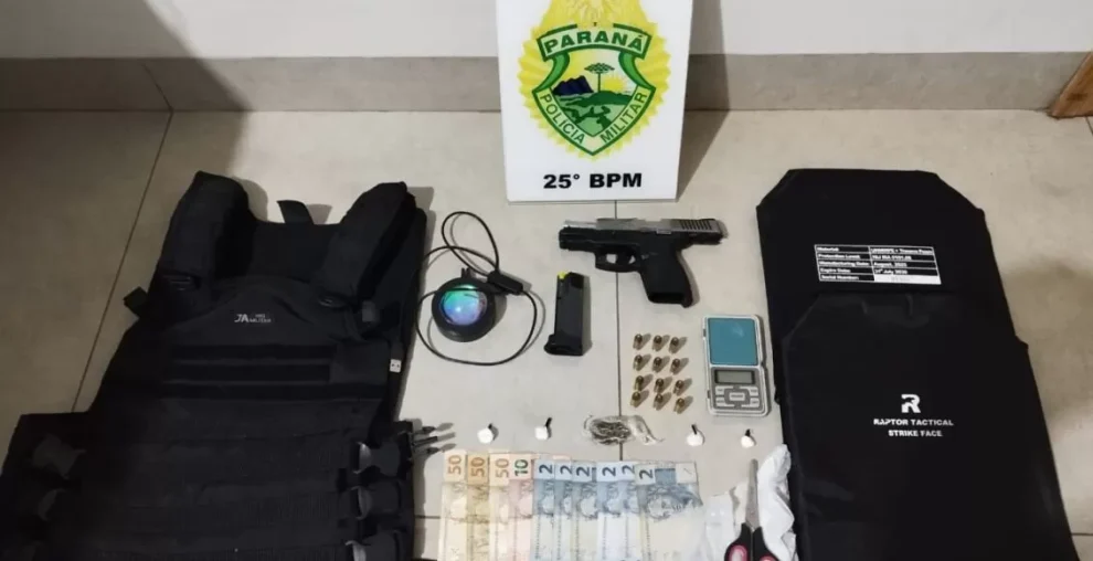 Durante a vistoria, a polícia apreendeu uma pistola calibre 9 milímetros, munições, um colete balístico, porções de cocaína e uma motocicleta citada em ocorrências anteriores. O caso foi registrado e segue para os procedimentos de apuração.