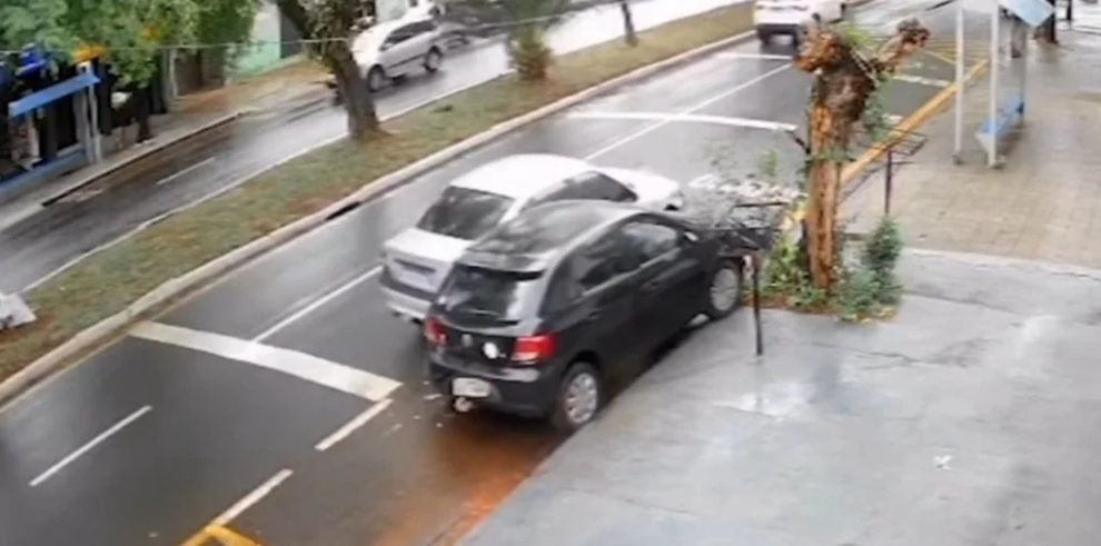 Na tarde desta segunda-feira (22), um carro estacionado na Avenida Sophia Rasgulaeff, em Maringá, foi atingido por outro veículo. Câmeras de segurança da região registraram o momento da batida.