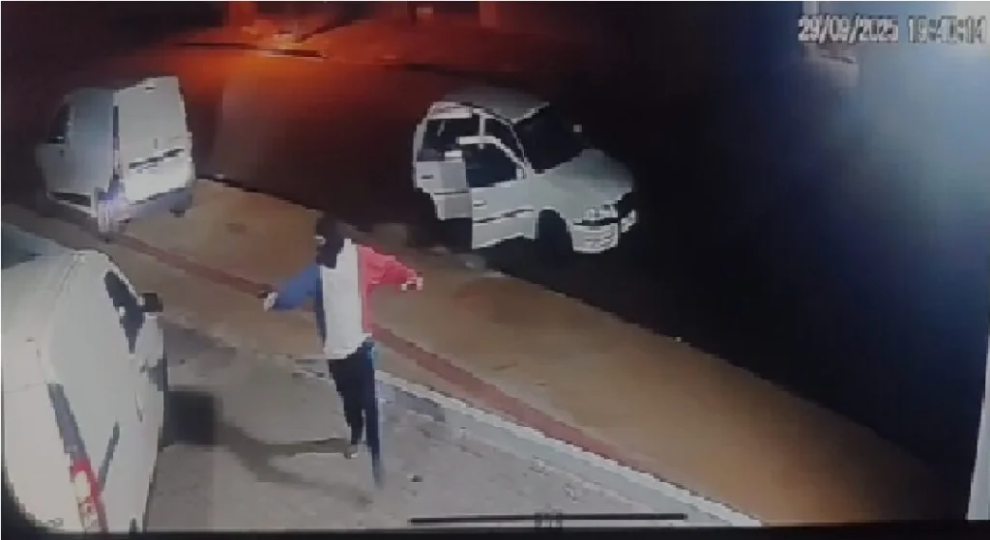 Imagens de câmeras de segurança registraram toda a ação. O vídeo mostra o momento em que um veículo Gol branco chega ao local. Antes mesmo de o carro parar, um dos criminosos desembarca correndo e aponta a arma para os trabalhadores. Em seguida, outros homens descem do carro e rendem as vítimas. Todos usavam calças, blusas de manga longa e capuzes para dificultar a identificação.