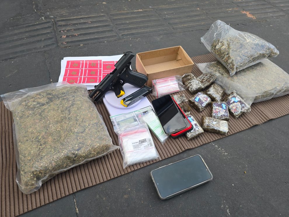 As diligências prosseguiram na residência do casal, no Portal das Torres, onde foram apreendidas mais porções de maconha, uma pistola calibre 9 mm e uma balança de precisão. A arma será periciada para verificar eventual ligação com homicídios e outros crimes.