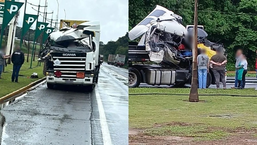 Um bebê de apenas oito meses morreu e outras quatro pessoas ficaram feridas em um grave acidente entre dois caminhões, registrado por uma câmera de segurança, na tarde desta quinta-feira (9), na BR-476, em São Mateus do Sul, região sul do Paraná.