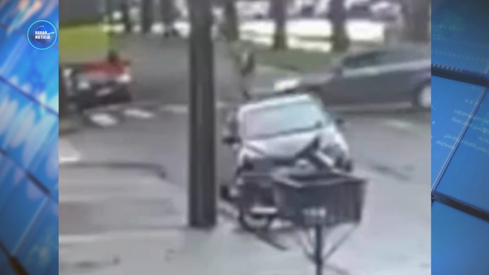 Um grave acidente foi registrado na tarde desta terça-feira (24) no cruzamento da Avenida Pedro Taques com a Rua Araxá, em Maringá. Imagens de uma câmera de segurança flagraram o momento em que um jovem que trafegava de patinete elétrico foi atingido por um carro.